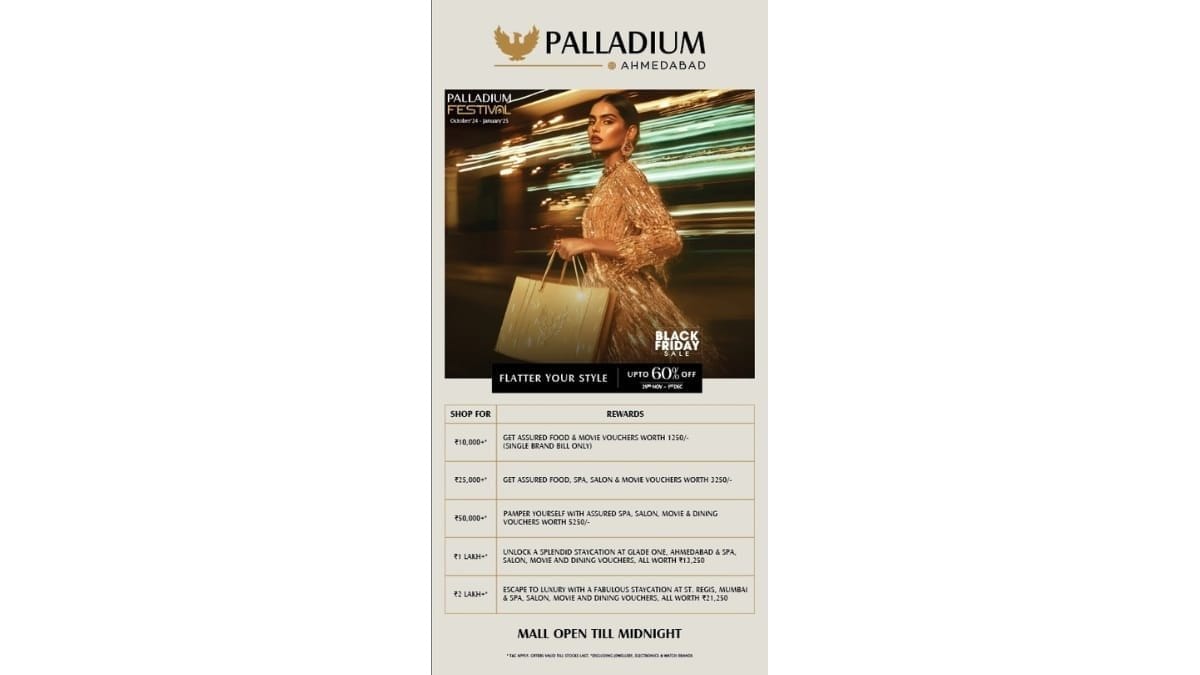 “Palladium Ahmedabad is not just a shopping destination; it’s a space where customers experience luxury, comfort, and indulgence,” said a spokesperson for Palladium Ahmedabad. “We go above and beyond to ensure that our shoppers leave not just with great purchases but also with memorable experiences. This Black Friday, we’re raising the bar with rewards that no other mall offers.”